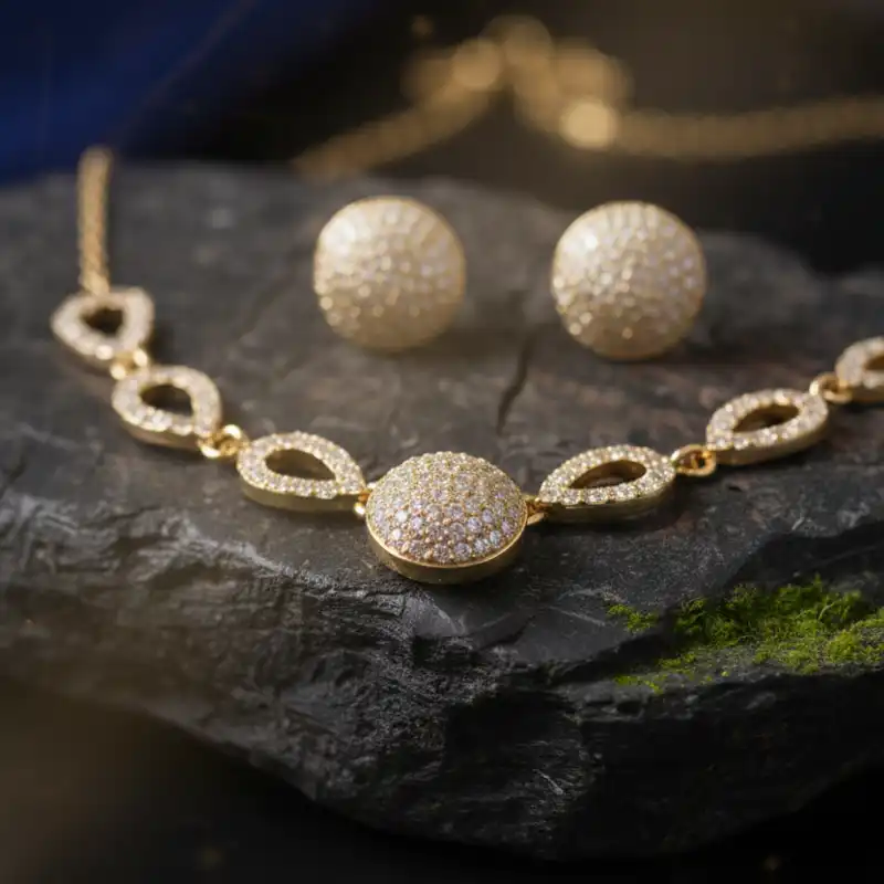 Enhance your elegance with our beautifully crafted Elegant Gold Sparkle Necklace Set — designed to give you a graceful and sophisticated look for every special moment.