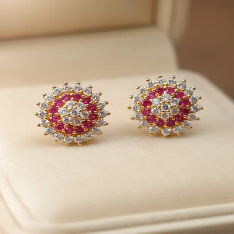 Add a graceful touch to your look with these gold plated crystal floral earrings for women. Designed with sparkling pink and white stones, these lightweight earrings are perfect for weddings, parties, and festive wear. Comfortable to wear and easy to match with both traditional and modern outfits.