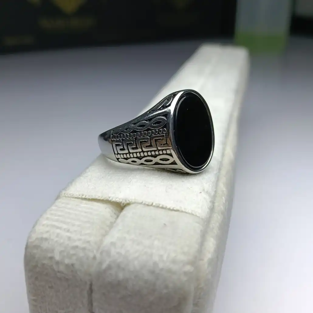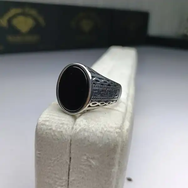 Silver Ring with Black Aqeeq Stone
