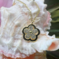 - Design: Independent spinning plumeria flower over black enamel outline